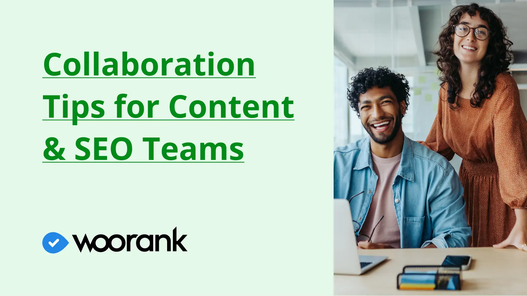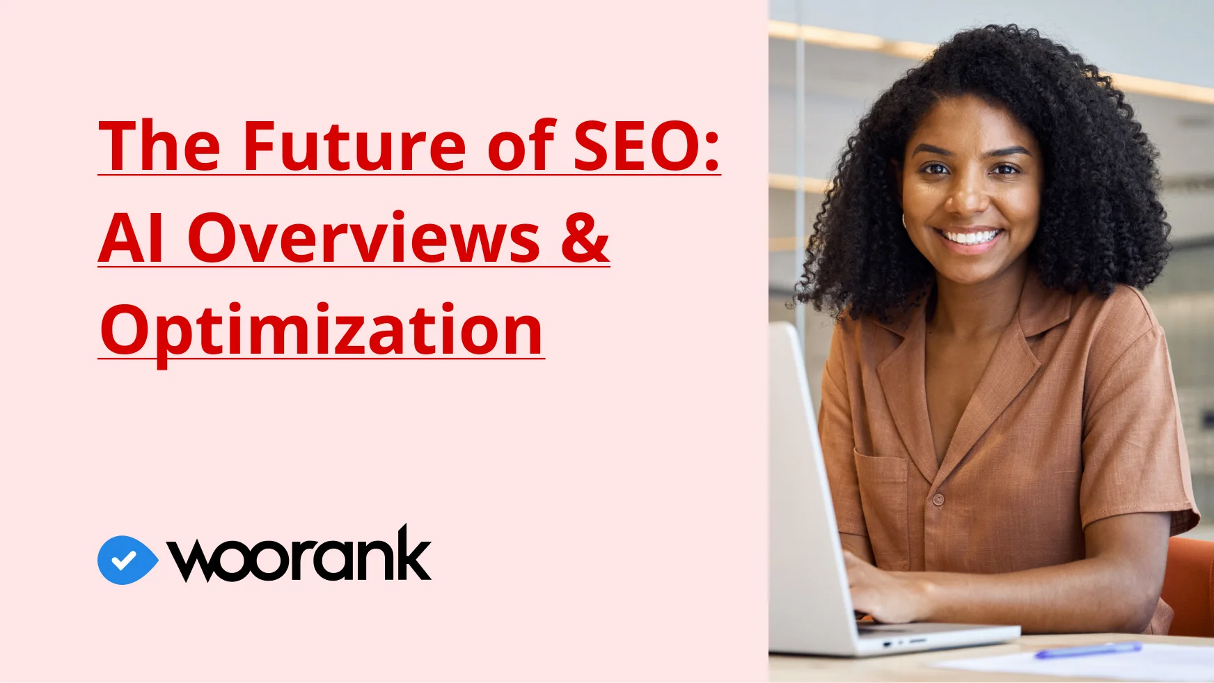 Business woman portrait smiling to the camera with a laptopWooRank Score Over Time with a line coming from red to greenWooRank Review showing some criterias like meta description, backlinks counter and technologies WooRank identifies on the page