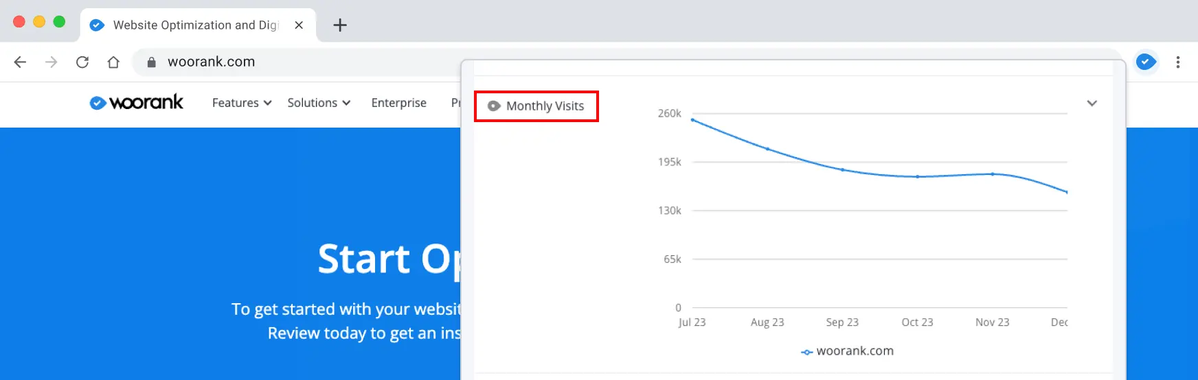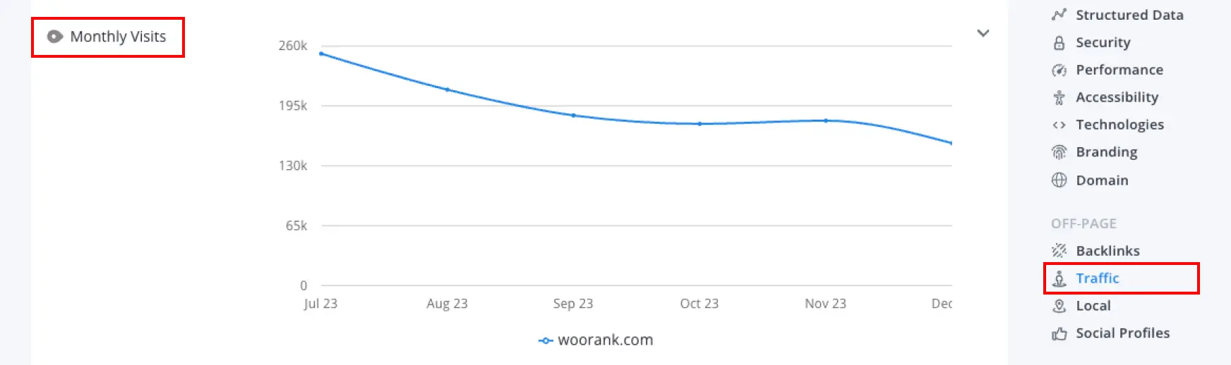 3. WooRank Extension: Extension >>> Off-Page SEO Section >>> Traffic