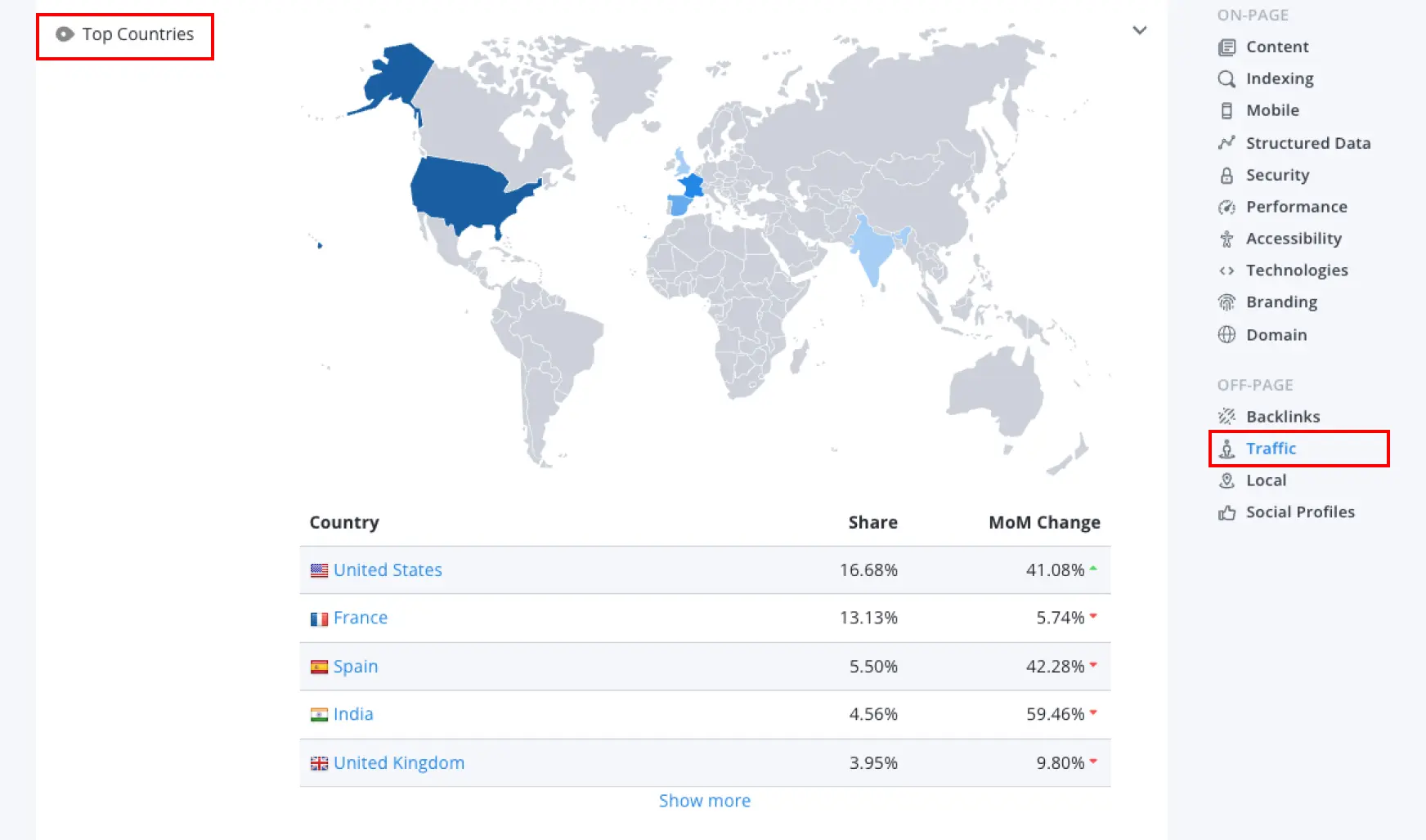 1. Page Review: Page Review >>> Off-Page SEO Section >>> Traffic