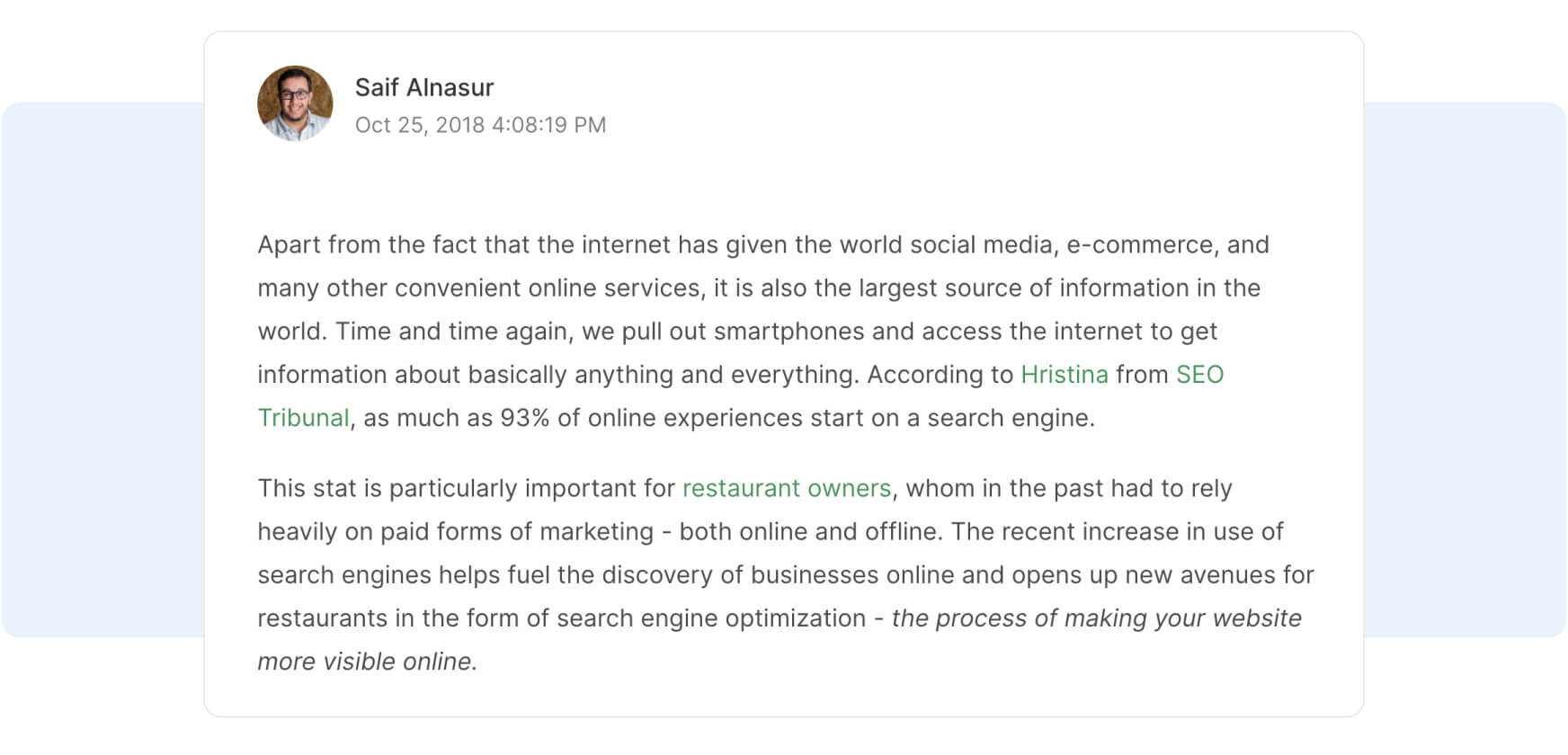 Users click on interesting headlines, but it’s the introduction that makes them stay. If the introduction meets their search criteria and has an interesting hook, readers are more likely to continue to engage with your content.