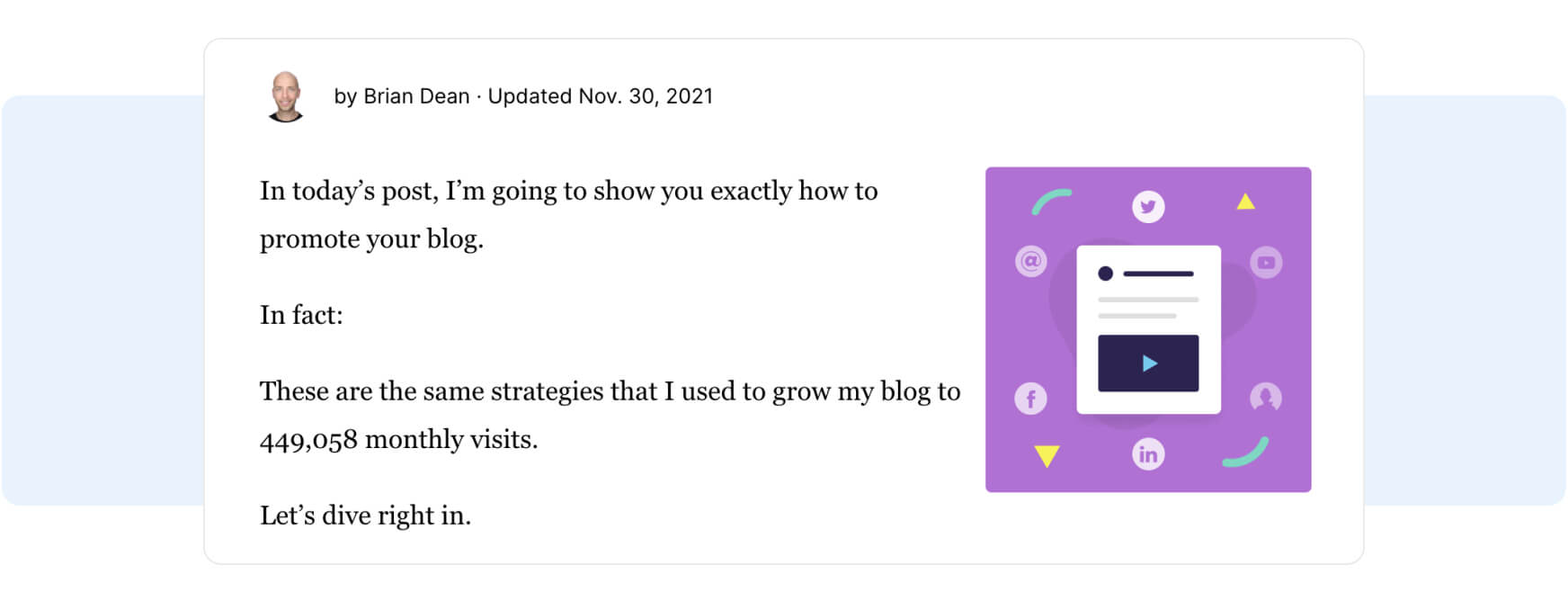 This introduction’s structure is clear, concise, and inviting to the reader. The author, Brian Dean, is the owner of Backlinko, and a well-known SEO expert. Mr. Dean has created two formulas for drafting SEO-rich introductions: