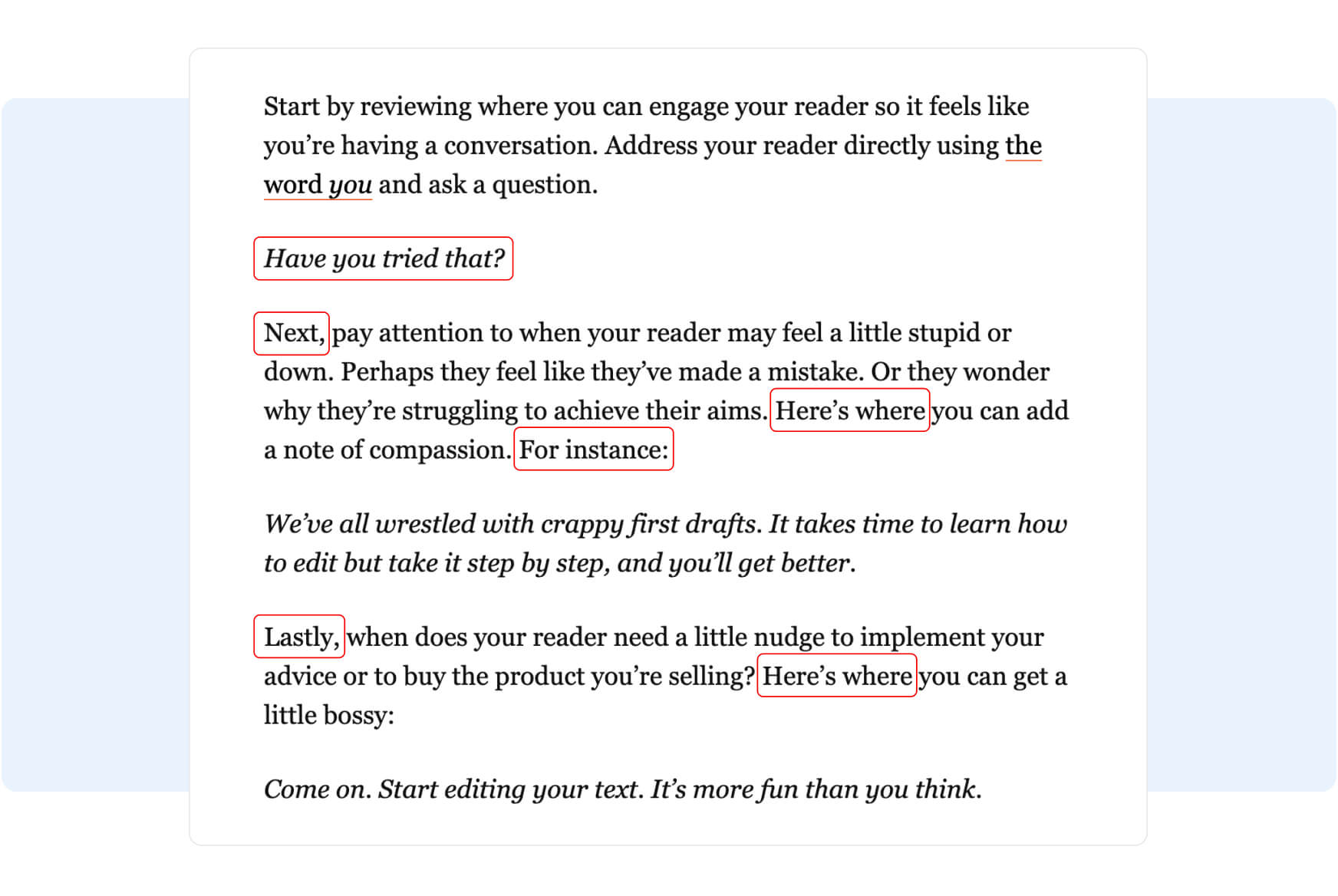 SEO writers call transitionary words/phrases “bucket brigades”: Their purpose is to connect the thoughts in your content, engaging the readers’ interest and daring them to continue. Transition words can better your writing, and as a result, better your SEO.