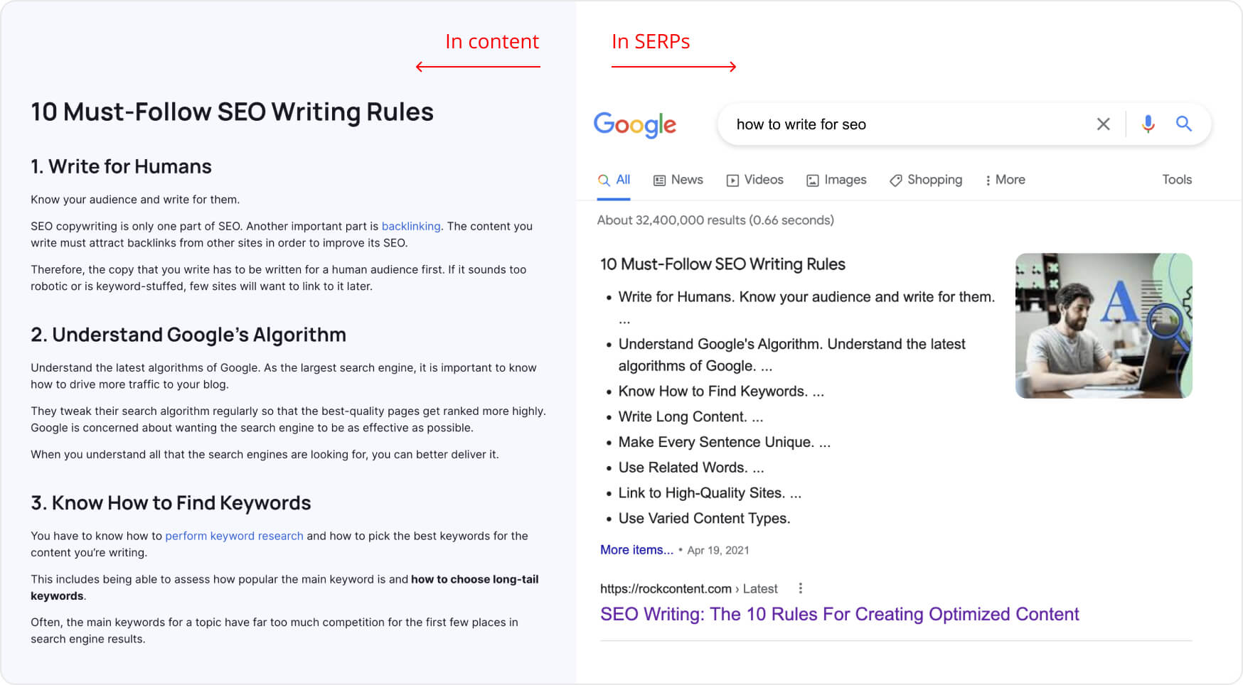 Top notch content that’s well-rounded, correctly formatted, and benefits an audience is what Google demands. Unfortunately, that’s just the base requirements. If we want to rank higher in SERPs, we need to produce high-quality content that focuses on SEO as well.