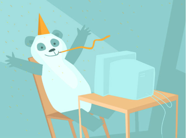 <Img src = "https://s3.amazonaws.com/woocms.woorank.com/2016/Nov/celebrating_panda-1480416313590.jpg" alt = "Panda fêtard avec un chapeau de fête orange, assis devant un ordinateur" />