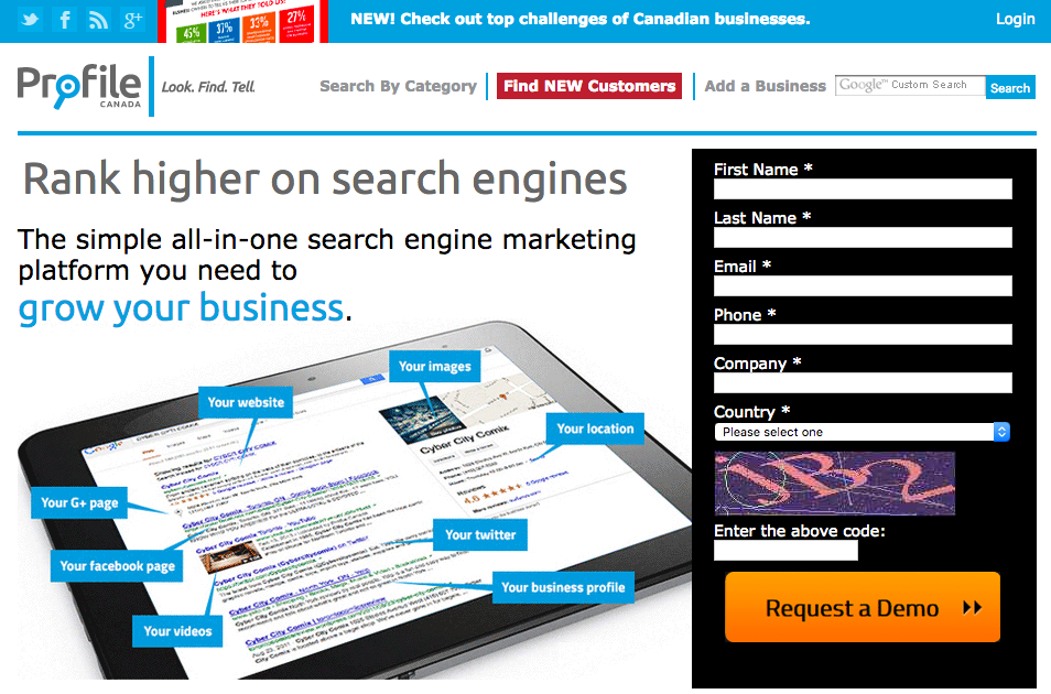 Profile Canada is a popular local search sites that offers free listings for local Canadian businesses. The user traffic on the site is considerably high.