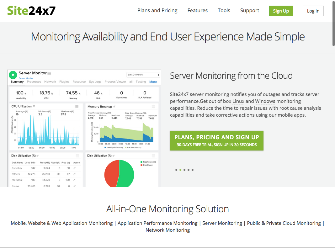 Monitis carries out free uptime monitoring that is easily customizable and has a list of interesting and useful features. This tool not only helps you monitor your site's uptime, but also lets you monitor your network and server performance and page load time. It sends you alerts via SMS and emails and to your Android and iOS devices with its mobile monitoring service.