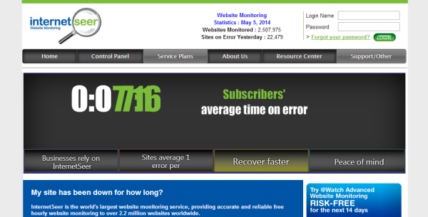 Monitor all your internet services and get real-time alerts via sms, email, twitter and RSS. The monitoring frequency is one minute and the service provides more regular checks in case of breakdown. You get extensive reports of your server response times, performance reports and uptime reports that help identify breakdowns.