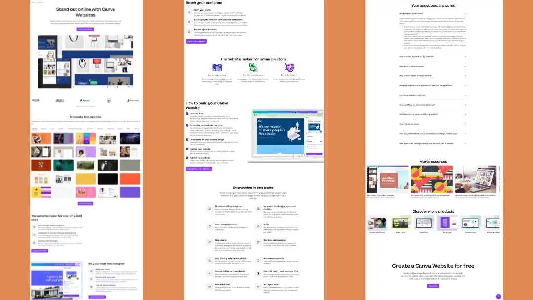 As Canva is a graphic design platform, it serves abundant graphical content on its landing page. For longer landing pages like on Canva, adding engaging videos, templates, and images and grouping them in corresponding sections was a smart move.