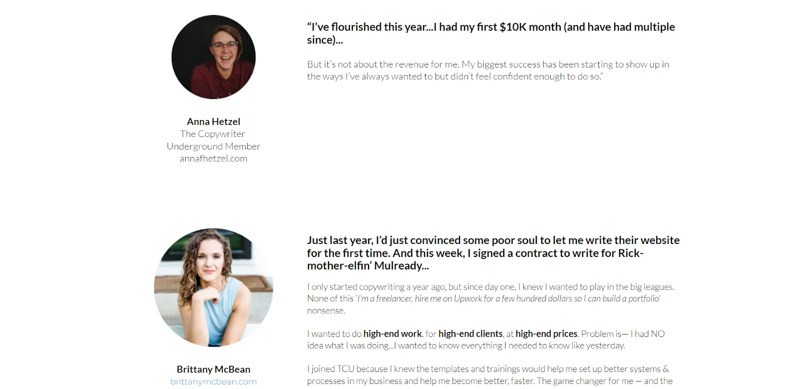 While both negative and positive feedback are critical for converting visitors, a landing page should highlight positive experiences. As you can see in the screenshot below, The Copywriter Club’s landing page example does just that.