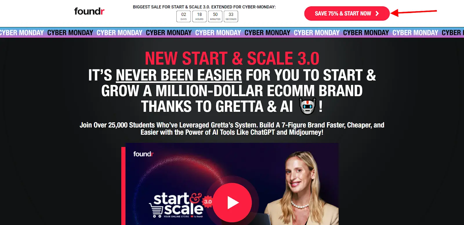 Tap into urgency and scarcity. That's where you can employ tools like limited-time offers or low stock levels. Phrases like “Limited offer” or “Only a few spots left” can nudge the user towards making a decision now rather than later. Take a look at how Foundr incorporates urgency in its main CTA button, “Save 75% & Start Now”.