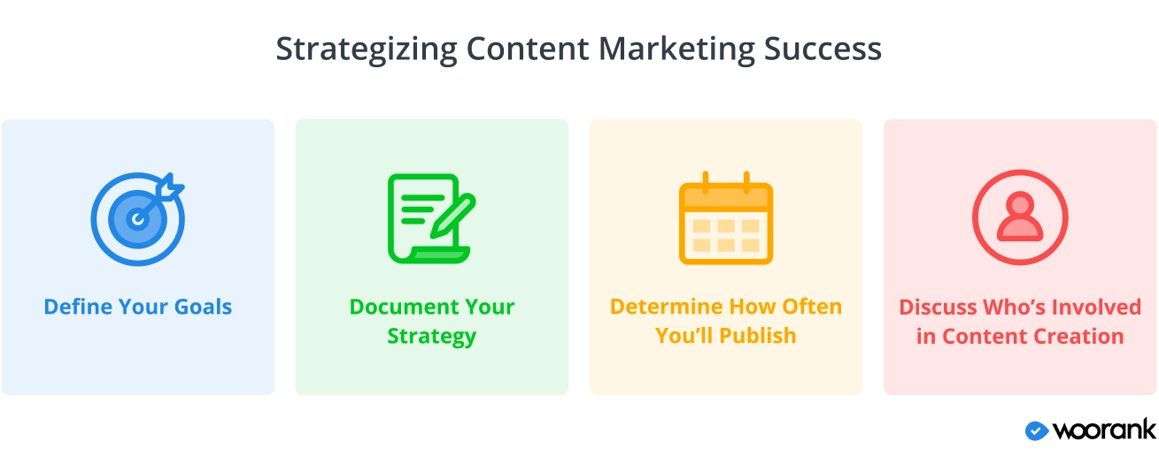 Don’t make the mistake of not setting goals and not defining your strategy. Know where you want to go so that you can develop a solid plan for getting there. What do you want to achieve overall with content marketing? Brand awareness? A stronger reputation in your industry? More leads?