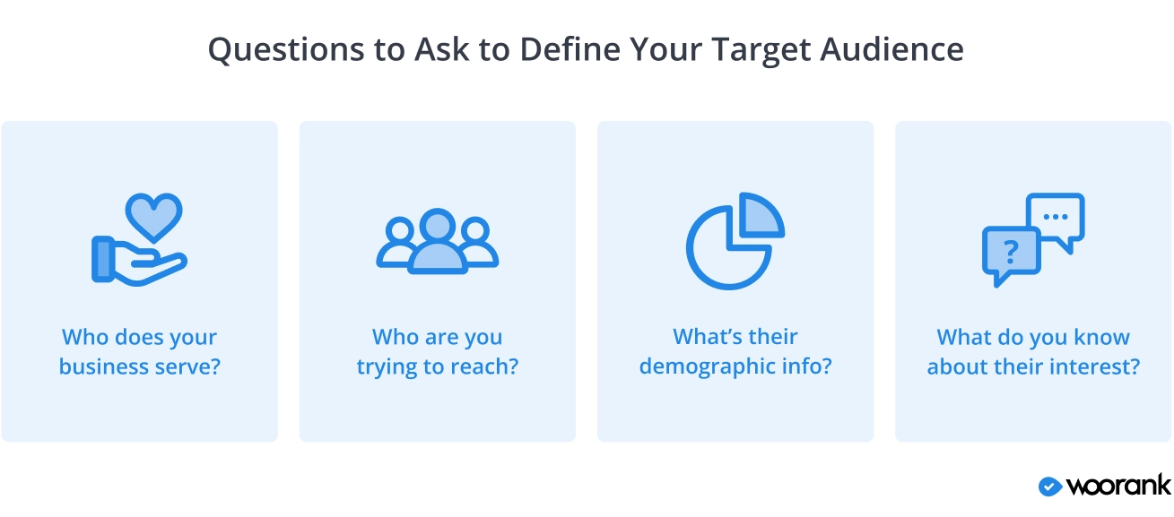Before you create any content, define your target audience. Who does your business serve? Who are you trying to reach with your content? What is their demographic information? What can you tell about their lifestyle, behaviors, interests, and abilities?