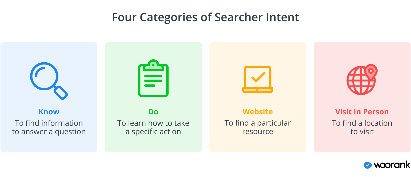 In the case of finding the correct search intent for other keywords, Google's search evaluation quality guidelines identified four categories of searcher intent:
