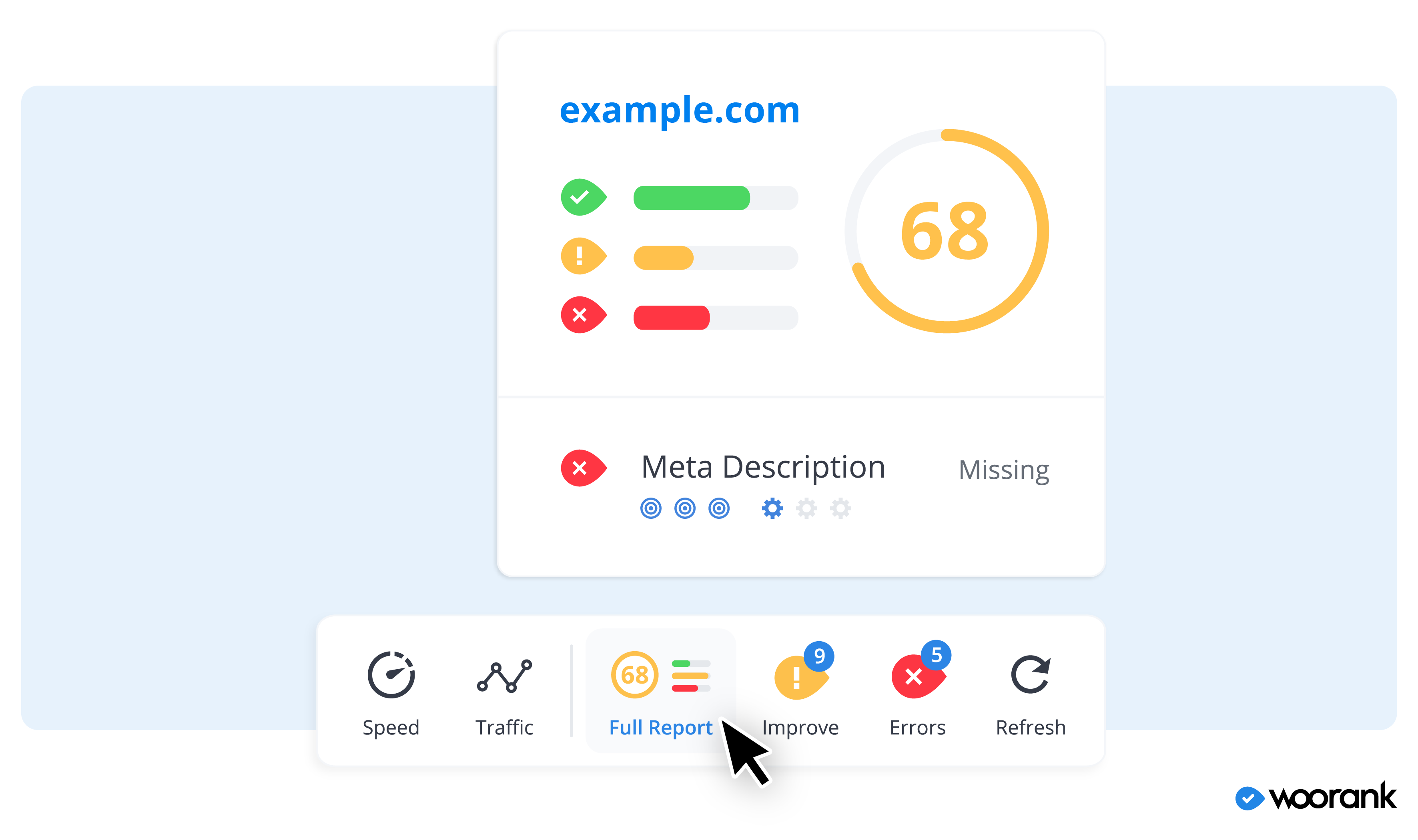 Basically, these metrics look at how long it takes for web content to load on a webpage, how different pieces of content on the same page affect one another, and how long a visitor must wait before they can interact with the content. The longer a visitor has to wait to purchase what they want, the more likely they are to move on to another site. Additionally, if one piece of content forces all the other pieces of content to move around the page, a buyer might accidentally buy the wrong thing, which adds to their negative experience. The WooRank Assistant can assess your website’s performance against these metrics and offer suggestions on how to improve them.