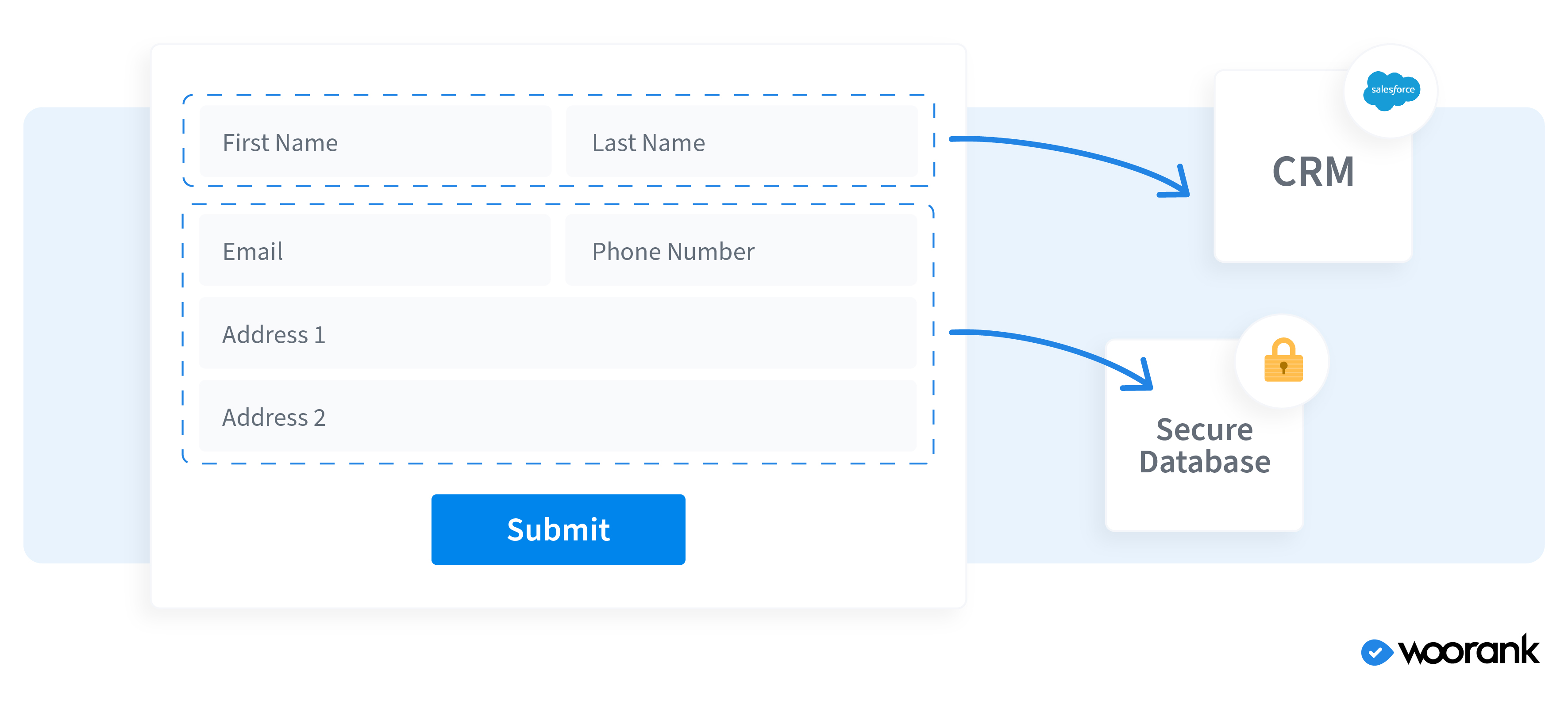With the Zapier connector, you are in full control of what data goes where. For example, out of all the information potential customers enter into the form, you can choose to send just their first and last name to Salesforce or any other CRM for tracking purposes. Other, more sensitive information like personal phone numbers can be sent to a sales rep or your own secure database. Though it will be WooRank’s technology running the analysis, WooRank also does not collect, see, or store any user info–only the URL to build the SEO report. Once WooRank creates the report, you decide how to distribute and design the data. The white-label PDF is fully customizable to feature your company’s logo and design. You can also customize what data the report shows potential clients, meaning you can choose to include or exclude certain metrics.