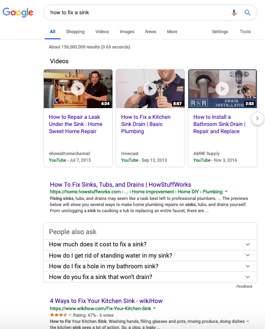 Here are the results for at the non-localized query "how to fix a sink":