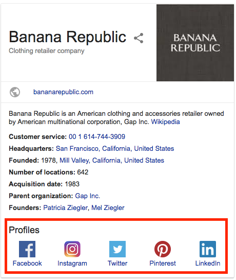 Adding this markup will help Google add those social media links at the bottom of the Knowledge Panel:
