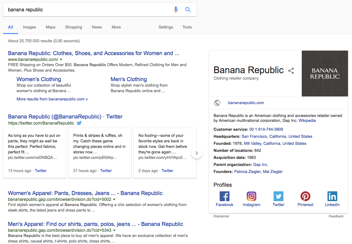 To see this example of the semantic web in action, we again turn to the Knowledge Panels: