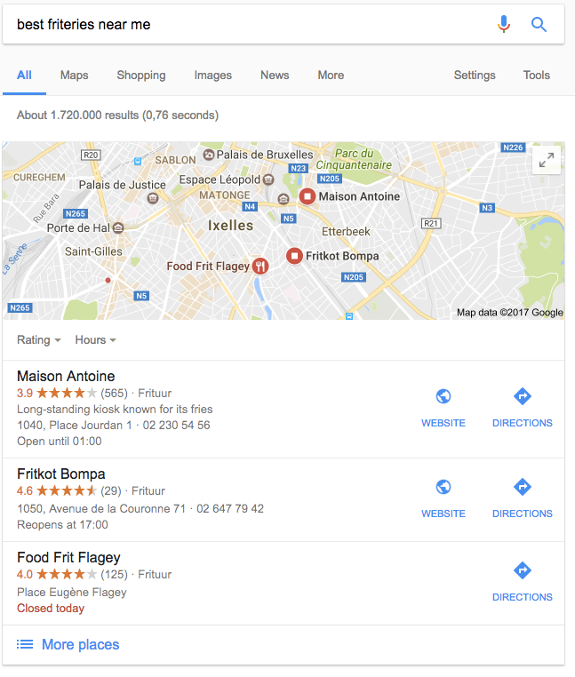 Note that the goal here, as is often the case in semantic SEO, isn't necessarily to get users to click through to your website. The goal is to get important information, the information the user is actually searching for, in front of the searcher as quickly as possible. We've known for years how improving local SEO will improve in-store visits and purchases.