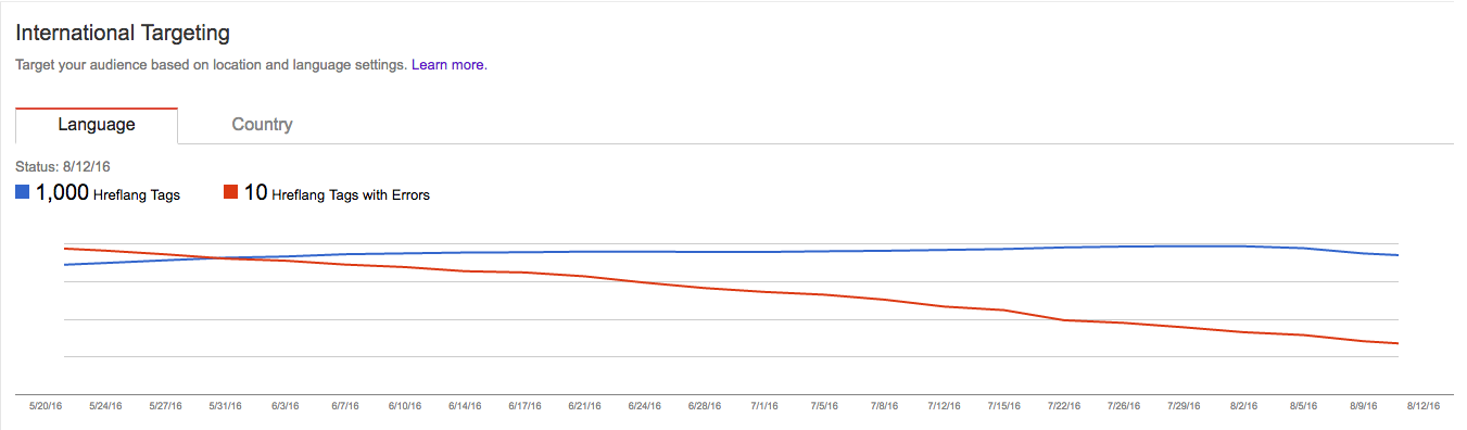 Check for problems with your language and country codes using Google Search Console’s International Targeting report. This report will identify when you use a wrong, or nonexistent, value.